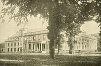 In 1842 further major rebuilding of the south east front was completed, and later Sir Charles Isham commissioned the building of a new façade with porch to the north-west front, which is now the distinctive main entrance to the Hall.[3] This was completed in 1862. The tower was built about the same time.[2]