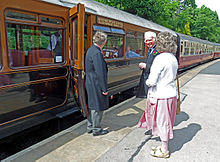 Surviving coaching stock of L&YR origin go as far as 1878, with Directors Saloon No. 1 being privately preserved at the Keighley & Worth Valley Railway.[22] Multiple coaches are preserved by Lancashire and Yorkshire Railway Trust,[23] at the Keighley & Worth Valley Railway, 6-wheel 5-comp third No. 1507,[24] Blackpool Club Car No. 47,[25] 6-wheel 4-comp First No. 279[26] and Brake third No. 1474.[27]