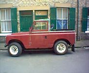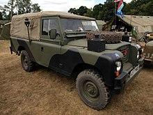 The Land Rover series I, II, and III (commonly referred to as series Land Rovers, to distinguish them from later models), or simply the Land-Rover, are compact British off-road vehicles, produced by the Rover Company since 1948, and later by British Leyland. Though unapologetically inspired by the World War II jeep, the Land Rover immediately distinguished itself from all other cars. From launch, it was the first mass-produced civilian four-wheel drive car with doors on it, and an available hard roof. Contrary to conventional car and truck chassis, it used a sturdier fully box-welded frame. Furthermore, due to post-war steel shortage, and aluminium surplus, Land Rovers received non-rusting aluminium alloy bodies, favouring their longevity. In 1992, Land Rover claimed that 70% of all the vehicles they had built were still in use.