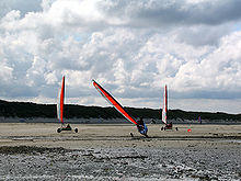 Land sailing, also known as 'sand yachting', 'land yachting' or 'dirtboating',[1] is the act of moving across land in a wheeled vehicle powered by wind through the use of a sail.[2] The term comes from analogy with (water) sailing. Historically, land sailing was used as a mode of transportation or recreation. Since the 1950s, it has evolved primarily into a racing sport.