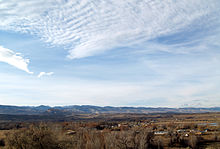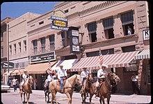 On October 1, 1906, Lander became the westward terminus of the "Cowboy Line" of the Chicago and North Western Railway, thus originating the slogan "where rails end and trails begin." Originally intended to be a transcontinental mainline to Coos Bay, Oregon, or Eureka, California, the line never went further west, and service to Lander was abandoned in 1972.[15] With the arrival of the railroad, Lander's population more than doubled between 1900 and 1910.[16] At the turn of the century the town and surrounding valley were promising places for agricultural development due to the area's climate and potential for irrigation.[17] At the time there were several new ventures around the town producing wool, wheat, oats, alfalfa, hay, vegetables, small fruit and in some cases orchards.[17] However, a report from the State of Wyoming published in 1907 says agriculture around Lander only supplies local demand.[17] In 1962 U.S. Steel opened the Atlantic City iron ore and mill, 35 miles south of Lander near Atlantic City[18] The mine was a significant employer in Lander, but by 1983 it ceased operations.[18]