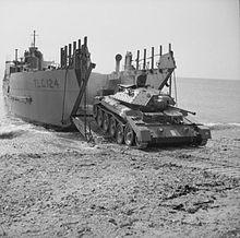 Despite this outlook, the British produced the Motor Landing Craft in 1920, based on their experience with the early 'beetle' armoured transport. The craft could put a medium tank directly onto a beach. From 1924, it was used with landing boats in annual exercises in amphibious landings.[3] A prototype motor landing craft, designed by J. Samuel White of Cowes, was built and first sailed in 1926.[4][5]