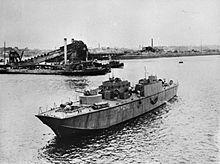 The Landing Craft Gun (LCG) was another LCT conversion intended to give supporting fire to the landing. Apart from the Oerlikon armament of a normal LCT, each LCG(Medium) had two British Army 25 pounder gun-howitzers in armoured mountings, while LCG(L)3 and LCG(L)4 both had two 4.7 inch naval guns.[23] Crewing was similar to the LCF. LCGs played a very important part in the Walcheren operations in October 1944.