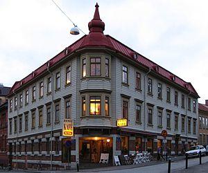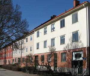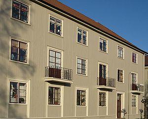 Landshövdingehus (Swedish: [ˈlândsˌhœvdɪŋɛˌhʉːs]) is a building type unique to the Swedish city of Gothenburg. 19th century city bylaws ruled that houses made of wood could be of maximum of two storeys high, in order to protect against fires. However, one building association tried to circumvent the rule and submitted drawings for a building with the ground storey built of brick and two upper storeys of wood. The city building council did not accept the application, but the county government overruled them and the landshövdingehus—"governor house"—was born.[1]