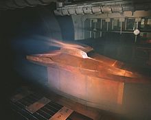 Langley Field and NACA began parallel growth as air power proved its utility during World War I. The center was originally established to explore the field of aerodynamic research involving airframe and propulsion engine design and performance. In 1934 the world's largest wind tunnel was constructed at Langley Field with a 30-by-60-foot (9.1 m × 18.3 m) test section; it was large enough to test full-scale aircraft.[9][10] It remained the world's largest wind tunnel until the 1940s, when a 40-by-80-foot (12 m × 24 m) tunnel was built at NASA Ames Research Center in California.[11]