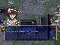 - Guyframe*: A bipedal robot designed by Gizlof from his laboratory research to create the ultimate weapon. Appears as a powerful enemy unit in all three scenarios. It is canonically piloted by the brainwashed Rachel in the Independent path. It is rendered immobile by the defeat of Gizlof, the wielder of Alhazard.