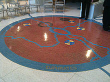 On May 22, 1967, Hughes died in the Stuyvesant Polyclinic in New York City at the age of 66 from complications after abdominal surgery related to prostate cancer. His ashes are interred beneath a floor medallion in the middle of the foyer in the Schomburg Center for Research in Black Culture in Harlem.[44] It is the entrance to an auditorium named for him.[45] The design on the floor is an African cosmogram entitled Rivers. The title is taken from his poem "The Negro Speaks of Rivers". Within the center of the cosmogram is the line: "My soul has grown deep like the rivers".