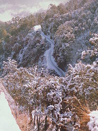 Originally known as Kaludanda (Hindi: कालूडाण्डा) after Kalu (Black) and Danda (hills) in Garhwali, Lansdowne was founded and named after then Viceroy of India (1888-1894), Lord Lansdowne in 1887, and by 1901 it had a population of 3943.[1] Lansdowne was developed by the British for catering for the Recruits Training center of the Garhwal Rifles. Lansdowne was a major place of the activities of freedom fighters from British Garhwal during British period. Nowadays, the famous Garhwal Rifles of the Indian Army has its command office here.[2] Lansdowne is one of the quietest hill stations of India and is popular since the British came to India. Lansdowne is unlike other hill stations as it is well connected with motorable roads but remote in its own way. It is situated at an altitude of 1,706 m above sea level surrounded with thick oak and blue pine forests in the Pauri Garhwal district of Uttarakhand state.