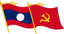 On 21 February 1973, after years of warfare, a peace agreement was brokered with the Royal Lao Government.[8] A Provisional Government of National Unity (PGNU) was established; it was composed of communist sympathisers and led by royalist Souvanna Phouma.[8] Similar to the unravelling of South Vietnam from 1974 to 1975, the Royal Lao Government faced several rebellions.[9] From December 1974 to January 1975 royal troops in the Houei Sai district of Houa Khong Province, and in Khammouane Province, began an uprising against the government.[9] Reacting to unfolding events, the party, through the Pathet Lao, seized control of the roads leading to Vientiane, effectively cutting off supplies to the capital.[9] During April and May, a city-wide anti-government protest took place in Vientiane, which led to the resignation of five cabinet members.[10] In a last-ditch attempt to save the monarchy, the government announced new elections for 1976.[11] On 26 November, LPRP representatives managed to get the monarchy officially to "voluntarily" renunciate its royal wealth and abdicate.[12] The party thus convened a National Congress of People's Representatives for 1–2 December 1975. The congress dissolved the Kingdom of Laos, established the Lao People's Democratic Republic, and announced the end of the 30-year-old National Democratic Revolution.[11]