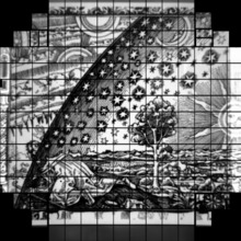 The camera focal plane is flat, 64 cm in diameter. The main imaging is performed by a mosaic of 189 CCD detectors, each with 16 megapixels.[42] They are grouped into a 5×5 grid of "rafts", where the central 21 rafts contain 3×3 imaging sensors, while the four corner rafts contain only three CCDs each, for guiding and focus control. The CCDs provide better than 0.2 arcsecond sampling, and will be cooled to approximately −100 °C (173 K) to help reduce noise.[43]