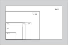 The most common large format is 4×5 inches, which was the size common cameras used in the 1830 to 1950s, like the Graflex Speed Graphic and Crown Graphic, among others. Less common formats include quarter-plate, 5×7 inches, and 8×10 inches (20×25 cm); the size of many old 1820s Kodak cameras (various versions of Kodak 1, 2, and 3 and Master View cameras, to much later Sinar monorail studio cameras) are 11×14 inches, 16×20 inches, 20×24 inches, various panoramic or "banquet" formats (such as 4×10 and 8×20 inches), and metric formats, including 9×12 cm, 10×13 cm, and 13×18 cm and assorted old and current aerial image formats of 9×9 inches, 9×18 inches (K17, K18, K19, K22 etc.), using roll film of 4, 5, 6, 7, 9, or 10 inches width or, view cameras (including pinhole cameras), reproduction/process cameras, and x-ray film.