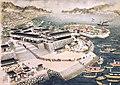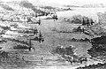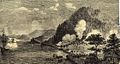 Birds-eye view of the bombardment of Kagoshima by the Royal Navy, August 15, 1863. Le Monde Illustré.