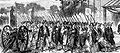 The members of the First Japanese Embassy to Europe (1862) visiting the 1862 International Exhibition in London, from the Illustrated London News.