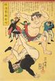 The years 1854–1855 saw a dramatic series of earthquakes, known as the Ansei great earthquakes, with 120 major and minor temblors recorded over a less than two-year period including the 8.4 magnitude 1854 Tōkai earthquake on 23 December 1854, the 8.4 magnitude 1854 Nankai earthquake occurring the following day, and the 6.9 magnitude 1855 Edo earthquake, which struck what is today modern Tokyo, on 11 November 1855. Shimoda on the Izu Peninsula was struck by the Tōkai earthquake and a subsequent tsunami, and because the port had just been designated as the prospective location for a US consulate, some construed the natural disasters as demonstration of the displeasure of the gods.[12] As the earthquakes were blamed by many Japanese on a giant catfish (Namazu) thrashing about, Ukiyo-e prints depicting namazu became very popular during this time.