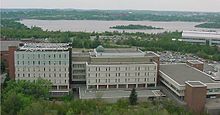 The university's campus is located on the south side of Ramsey Lake, just south of Greater Sudbury's downtown core in the Bell Grove neighbourhood. The city's Idylwylde golf course borders on the university campus to the west and the Lake Laurentian Conservation Area borders on the campus to the south.[3] The Lake Laurentian Conservation Area contains a network of trails used for running, mountain biking and nordic skiing.[4][5]