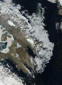 Its melting also caused major disruptions to the global climate cycle, because the huge influx of low-salinity water into the Arctic Ocean via the Mackenzie River[6] is believed to have disrupted the formation of North Atlantic Deep Water, the very saline, cold, deep water that flows from the Greenland Sea. That interrupted the thermohaline circulation, creating the brief Younger Dryas cold epoch and a temporary re-advance of the ice sheet,[7] which did not retreat from Nunavik until 6,500 years ago.