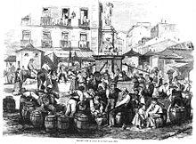 Lavapiés was long considered the most "typical" neighborhood of Madrid; humble and somewhat neglected.[2] Now its large immigrant population has given it an exotic, cosmopolitan flavor and it draws many visitors from other parts of Madrid, as well as foreign tourists. An inscription on a fountain in Plaza de Cabestreros is a monument to the Spanish Republic in Madrid. The ruins of Escuelas Pías, a religious school, were left to stand for many years after it was burned down by the anti-Catholic, radical left that supported the Popular Front in 1936. Only in 2002 were part of the ruins converted into a university library. The north side of the ruins face the Plaza Augustin Lara, named after the 20th century Mexican composer who wrote a song about Madrid which includes the phrase "I'll make you the empress of Lavapies".