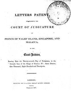 - ^ The First Charter of Justice of 1807 applied only to Prince of Wales' Island (Penang).