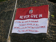 The school honours its original purpose by continuing to offer a reduction in fees for the children of military families. About a quarter of the boarders are the sons and daughters of former pupils.[20] Till recently, as part of its annual Founder's Day celebrations, attended by many Old Sanawarians, the school continued to troop the Royal colours.[17] Until 1990, a significant number of school-leavers continued to join the armed forces but there has been a sharp decline in this tradition, and in 2011 one Old Sanawarian brigadier was quoted in The Times of India as saying that in his day "the main aim was to join the forces, but now hardly anyone is interested in doing so".[13]