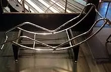 In 1925, Le Corbusier combined a series of articles about decorative art from "L'Esprit Nouveau" into a book, L'art décoratif d'aujourd'hui (The Decorative Art of Today).[36][37] The book was a spirited attack on the very idea of decorative art. His basic premise, repeated throughout the book, was: "Modern decorative art has no decoration."[38] He attacked with enthusiasm the styles presented at the 1925 Exposition of Decorative Arts: "The desire to decorate everything about one is a false spirit and an abominable small perversion....The religion of beautiful materials is in its final death agony...The almost hysterical onrush in recent years toward this quasi-orgy of decor is only the last spasm of a death already predictable."[39] He cited the 1912 book of the Austrian architect Adolf Loos "Ornament and crime", and quoted Loos's dictum, "The more a people are cultivated, the more decor disappears." He attacked the deco revival of classical styles, what he called "Louis Philippe and Louis XVI moderne"; he condemned the "symphony of color" at the Exposition, and called it "the triumph of assemblers of colors and materials. They were swaggering in colors... They were making stews out of fine cuisine." He condemned the exotic styles presented at the Exposition based on the art of China, Japan, India and Persia. "It takes energy today to affirm our western styles." He criticized the "precious and useless objects that accumulated on the shelves" in the new style. He attacked the "rustling silks, the marbles which twist and turn, the vermilion whiplashes, the silver blades of Byzantium and the Orient…Let's be done with it!"[40]