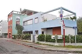 In 1926, Le Corbusier received the opportunity he had been looking for; he was commissioned by a Bordeaux industrialist, Henry Frugès, a fervent admirer of his ideas on urban planning, to build a complex of worker housing, the Cité Frugès, at Pessac, a suburb of Bordeaux. Le Corbusier described Pessac as "A little like a Balzac novel", a chance to create a whole community for living and working. The Fruges quarter became his first laboratory for a residential housing ; a series of rectangular blocks composed of modular housing units located in a garden setting. Like the unit displayed at the 1925 Exposition, each housing unit had its own small terrace. The earlier villas he constructed all had white exterior walls, but for Pessac, at the request of his clients, he added color; panels of brown, yellow and jade green, coordinated by Le Corbusier. Originally planned to have some two hundred units, it finally contained about fifty to seventy housing units, in eight buildings. Pessac became the model on a small scale for his later and much larger Cité Radieuse projects.[45]