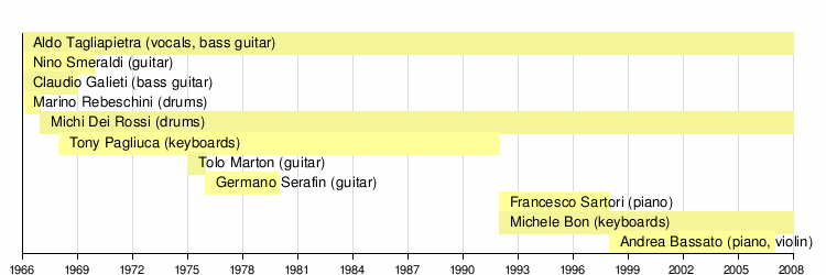 At the end of 2009, Aldo Tagliapietra left the band. He was replaced as lead singer by Jimmy Spitaleri of fellow Italian progressive rock band Metamorfosi.[13] In 2011 the group released La via della seta a concept album inspired by the Silk Road.