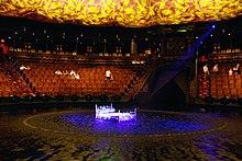 Le Rêve ("The Dream") was a stage production in residence at the Wynn Las Vegas casino resort. It was the only Las Vegas show set in an aquatic theater-in-the-round stage (>1 million US gallon (water capacity). The show featured diving and feats of strength with special effects, including fire effects. No seat is more than 40 feet (12 m) from the stage. The production was originally created by Franco Dragone but has been substantially revised over time. The show featured more than 90 performers and 250 cast and crew members.[1]