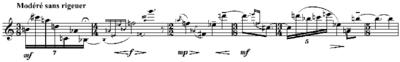 The opening of the third movement in the flute is typical of the difficulties required of performers including wide range, large leaps, and complex rhythms: