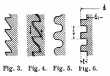 Buttress threads are of a triangular shape. These are used where the load force on the screw is only applied in one direction.[8] They are as efficient as square threads in these applications, but are easier to manufacture.