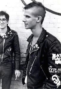 Punks wearing leather jackets in Evansville, Indiana ca. 1984