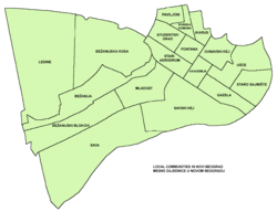Ledine is the easternmost settlement in the municipality, formerly developed as a sort of an informal settlement outside the projected area of the city of New Belgrade. Today it is urbanistically connected to the neighborhoods of Bežanija and Dr Ivan Ribar by the narrow urban strip along Vionogradska and Surčinska streets. The settlement itself is built between these two streets, both of which connect Belgrade and Surčin and along which a continuous built-up area of Belgrade-Ledine-Surčin is being formed.[1][2]