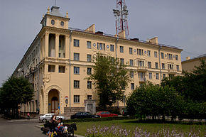 Though Oswald had wanted to attend Moscow State University, he was sent to Minsk, Belarus, to work as a lathe operator at the Gorizont Electronics Factory, which produced radios, televisions, and military and space electronics. Stanislau Shushkevich, who later became independent Belarus's first head of state, was also engaged by Gorizont at the time, and was assigned to teach Oswald Russian.[58] Oswald received a government-subsidized, fully furnished studio apartment in a prestigious building and an additional supplement to his factory pay, which allowed him to have a comfortable standard of living by working-class Soviet standards,[59] though he was kept under constant surveillance.[60]