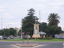 In 1913 when the Water Conservation and Irrigation Commission of New South Wales was formed Leeton was only a canvas town, the only houses being those built on farms by settlers and houses for its officers by the Commission.[13] On 3 April 1913 the first block of land was sold in the town. During 1913 a kurrajong tree which became known as the Pioneers' Tree, was planted as a feature in Kurrajong Avenue, and a butter factory was established in the town.[14]