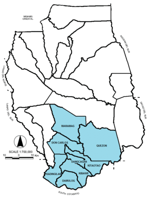 - Municipalities: Damulog, Dangcagan, Don Carlos, Kadingilan, Kibawe, Kitaotao, Maramag, Quezon