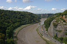 The woods, which cover an area of 2 square kilometres (0.77 sq mi), are on a ridge which mainly consists of limestone, with some sandstone which runs from Clifton to Clevedon, 10 miles (16 km) away on the Bristol Channel coast. At the southern end of the woods is Nightingale Valley (one of several thus named in the area), a dry valley which is cut into the side of the gorge.[1] Its area slopes from the highest point nearly opposite the north gate of Ashton Court to the River Avon beside the western buttress of the Clifton Suspension Bridge. The woods are on the Monarch's Way long-distance footpath.[2]