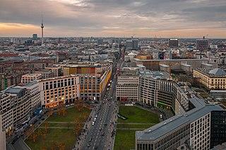 Leipziger Straße is a major thoroughfare in the central Mitte district of Berlin, capital of Germany. It runs from Leipziger Platz, an octagonal square adjacent to Potsdamer Platz in the west, to Spittelmarkt in the east. Part of the Bundesstraße 1 highway, it is today one of the city's main east–west road links.