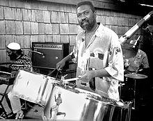 Sharpe began his career with Starlift steelband where he worked as a co-arranger with Ray Holman. He is most strongly associated with the Phase II Pan Groove Steel Orchestra, a band he has taken to several finals of the Panorama steelband competition, as well as winning the first place in 1987 and 1988.[1] He does not teach steelpan privately one on one, he teaches steelpan publicly at the panyard. Boogsie started to play steelpan at a young age when he was just four years old. He used to play with the Invaders, then he went to Starlift, the steelband with which Ray Holman was taking the revolutionary step of composing music specifically for the instrument. Boogsie wanted to continue what Ray Holman had started by starting his own steelband in 1972. Boogsie was not taught how to play steelpan, he just listened to the sounds on the street and taking part of jazz sessions on his steelpan with other musicians. Even though Boogsie can not read or write music his musical sense is very highly developed.
