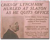 The Atlanta area public was outraged. A mob threatened to attack the governor at his home. A detachment of the Georgia National Guard, along with county policemen and a group of Slaton's friends who were sworn in as deputies, dispersed the mob.[60] Slaton had been a popular governor, but he and his wife left Georgia immediately thereafter.[56]
