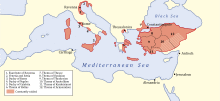 Leo III the Isaurian (Greek: Λέων Γ ὁ Ἴσαυρος, romanized: Leōn ho Isauros; c. 685 – 18 June 741), also known as the Syrian, was Byzantine Emperor from 717 until his death in 741 and founder of the Isaurian dynasty.[1] He put an end to the Twenty Years' Anarchy, a period of great instability in the Byzantine Empire between 695 and 717, marked by the rapid succession of several emperors to the throne. He also successfully defended the Empire against the invading Umayyads and forbade the veneration of icons.[2]