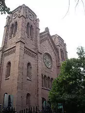 - ^ Removal of the Gothic stone spires (1889) leaves the church more decidedly Romanesque; Romanesque was still an unfamiliar architectural vocabulary; the design was described as being in the "Byzantine or Early Christian style of architecture." (Kathleen Curran, "19th Century AD", The Art Bulletin December 1999 on-line text).