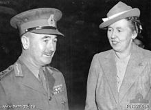 All this time, he remained active in the part-time Militia, commanding the 19th Infantry Battalion from 1921 to 1925.[36] He became commander of the 36th Infantry Battalion on 1 August 1926.[37] He was promoted to colonel in 1933, and was appointed to command the 14th Infantry Brigade on 1 January 1933. When he moved to Melbourne in 1934, he transferred to command of the 15th Infantry Brigade, then part of the 3rd Division under Major General Sir Thomas Blamey. On returning to Sydney in 1937 he assumed command of the 5th Infantry Brigade. During a visit to England in 1937 as part of his duties with the Orient Line, he had occasion to observe the British Army on manoeuvres in East Anglia, and was impressed by the pace of modern mechanised forces. He also realised that the Australian Army was lagging a long way behind in both human and technical resources. He was promoted to brigadier in 1938.[38] Known for his right-wing views even before the war, he was also a member of the clandestine far-right wing paramilitary organisation the New Guard.[39]