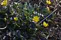 Ficaria verna, (formerly Ranunculus ficaria L.) commonly known as lesser celandine or pilewort,[3] is a low-growing, hairless perennial flowering plant in the buttercup family Ranunculaceae native to Europe and west Asia. It has fleshy dark green, heart-shaped leaves and distinctive flowers with bright yellow, glossy petals.[4][5] It is now introduced in North America, where it is known by the common name fig buttercup and considered an invasive species.[6][7][8][9] The plant is poisonous if ingested raw and potentially fatal to grazing animals and livestock such as horses, cattle, and sheep.[10] For these reasons, several US states have banned the plant or listed it as a noxious weed.[7][11] It prefers bare, damp ground and is considered by horticulturalists in the United Kingdom as a persistent garden weed;[12][13] nevertheless, many specialist plantsmen, nursery owners and discerning gardeners in the UK and Europe collect selected cultivars of the plant, including bronze-leaved and double-flowered ones. Emerging in late winter with flowers appearing March through May in the UK, its appearance across the landscape is regarded by many as a harbinger of spring.[12]