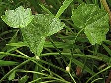 The German vernacular skorbutkraut ("scurvy herb") derives from the use of young leaves, which are high in vitamin C, to prevent scurvy.[17][42] However, use of lesser celandine to prevent scurvy could be considered a misnomer, tied to its similar appearance to common scurvygrass (Cochlearia officinalis), which shares similarly shaped leaves as well as sharing the german name skorbutkraut.[43] The German Hager's Manual of pharmacy practice of 1900 states Ranunculus ficaria [sic] and C. officinalis both share this name and use,[43] though there was little documentation of the toxicity of untreated Ficaria species at the time.