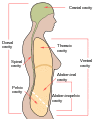 The various cavities of the human body as seen in a lateral projection, with the pelvic cavity labeled 4. | |
