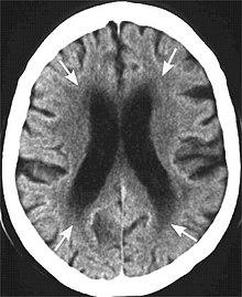 Leukoaraiosis is a particular abnormal change in appearance of white matter near the lateral ventricles. It is often seen in aged individuals, but sometimes in young adults.[1][2] On MRI, leukoaraiosis changes appear as white matter hyperintensities (WMHs).[3][4] On CT scans, leukoaraiosis appears as hypodense periventricular white-matter lesions.[5]