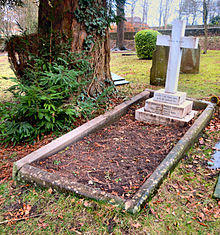 He died of pneumonia following influenza on 14 January 1898 at his sisters' home, "The Chestnuts", in Guildford. He was two weeks away from turning 66 years old. His funeral was held at the nearby St Mary's Church.[74] He is buried in Guildford at the Mount Cemetery.[27]