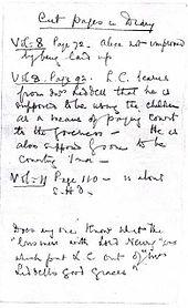 - ^ Dodgson Family Collection, Cat. No. F/17/1. "Cut Pages in Diary". (For an account of its discovery see The Times Literary Supplement, 3 May 1996.)