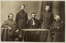 The delegation, led by Jimmy Johnson, its chief officer (and son of chief Red Jacket), were essentially former officers of what was left of the Iroquois Confederacy. Johnson's 16-year-old grandson Ha-sa-ne-an-da (Ely Parker) accompanied them as their interpreter, as he had attended a mission school and was bilingual. By chance Morgan and the young Parker encountered each other in an Albany book store. Soon intrigued by Morgan's talk of the New Confederacy, Parker invited the older man to interview Johnson and meet the delegation. Morgan took pages of organizational notes, which he used to remodel the New Confederacy. Beyond such details of scholarship, Morgan and the Seneca men formed deep attachments of friendship.[17]