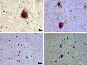 - ^ Schmidt ML, Martin JA, Lee VM, Trojanowski JQ (1996). "Convergence of Lewy bodies and neurofibrillary tangles in amygdala neurons of Alzheimer's disease and Lewy body disorders". Acta Neuropathologica. 91 (5): 475–81. doi:10.1007/s004010050454. PMID 8740227.