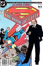 Luthor does not fully appear in The Man of Steel mini-series until the fourth issue, which takes place over a year after Superman's arrival in Metropolis. Terrorists seize Luthor's yacht, forcing Superman to intervene.[16] Satisfied at the hero's performance, Luthor attempts to hire him, admitting he knew about the incoming attack and allowed it to occur so he could see how Superman responded (assuming that the Man of Steel would arrive in time). Enraged, the Mayor deputizes Superman to arrest Luthor for reckless endangerment. Although Luthor is released from jail quickly and has the charges dropped, the humiliation of being publicly arrested and processed, coupled with indignation that Superman refused to work for him, results in the villain pledging to destroy Superman simply to prove his power.